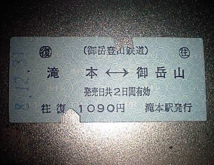 就職活動中休み、体調が悪かったため、家にて休んでおりました。年末・年始の御岳~入間20KM寒中行軍(笑)のときに使用したリュックを手入れしていると、大晦日・元日に乗車した御岳登山鉄道(御岳山ケーブルカー)の往復乗車券が出てきました、この往復乗車券は、今ではすっかり珍しくなった硬券(通常の切符のように薄い紙ではなく、厚紙にて作られた切符)なのです、こちらの硬券は、ふもとの滝本駅で片道または往復乗車券を買うと発券されます(頂上の展望リフトまでついた券は確か写真入の長く薄い紙でできた券だったと思います)昔懐かしい硬券をご希望の方は滝本駅にてお買い求めください。頂上の御岳山駅では、自動発券機のため硬券ではありませんのでご注意を。というわけで今日の画像は、2006年大晦日に発券された硬券です(笑)。