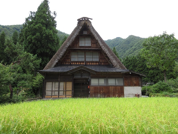 ↑菅沼集落の合掌造の住宅です、白川郷は雪対策で同じ方向を向いて建造されていますが、